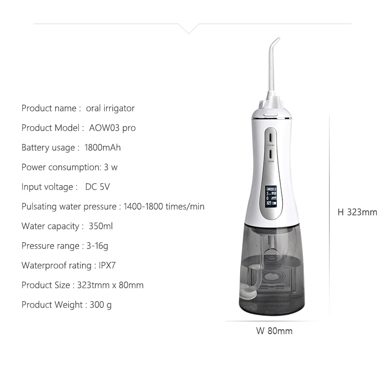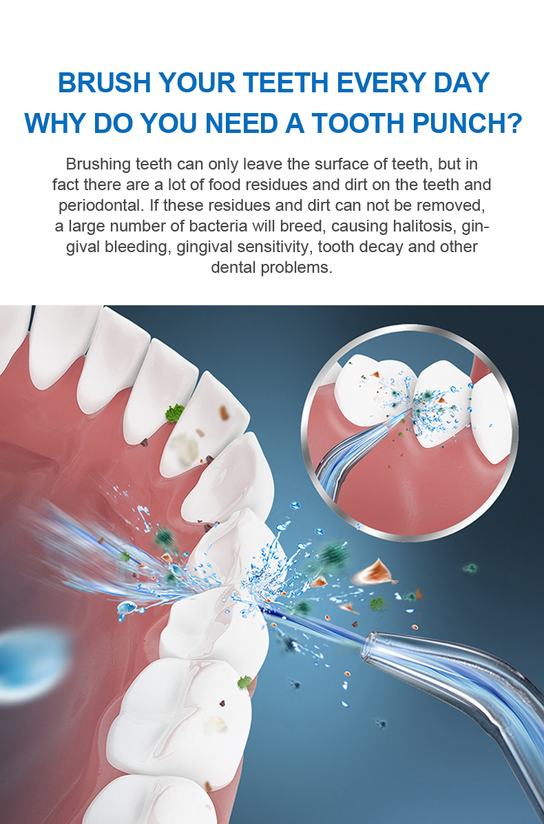 Овај зубни пилинг за воду даје импулсе високог притиска воде 1400-1800 пута у минути, ефикасно уклањајући 99,9% зубног наслага за дубинско чишћење зуба. Овај водени зубни пилинг масира десни, подстиче циркулацију крви и решава оралне проблеме као што су лош задах, ортодонтски зуби