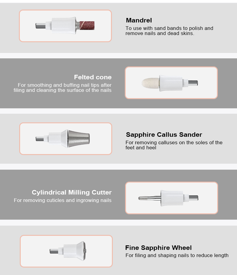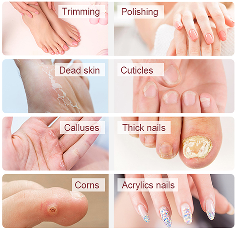 - 10 ПОДЕШАВАЊА БРЗИНЕ: Искусите снагу нашег електричног комплета за маникир, који садржи 10 прогресивних подешавања брзине и разноврсне ротације у смеру казаљке на сату и у супротном смеру. Ефиле бушилица за нокте гарантује прецизно брушење на дебелим ноктима на рукама и ногама и прилагођена је свим типовима коже, укључујући особе са дијабетесом