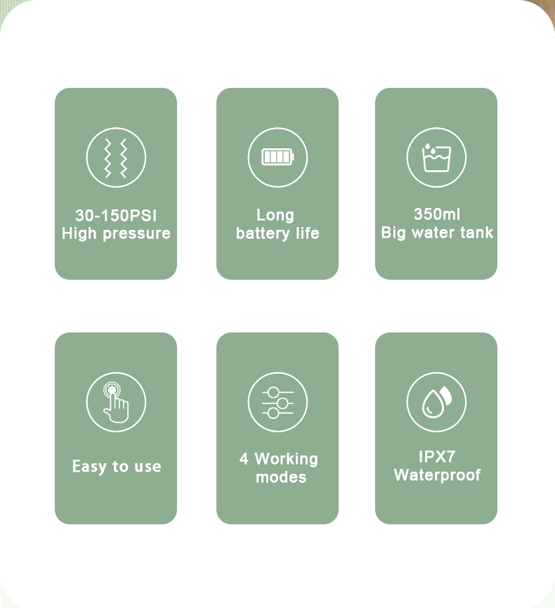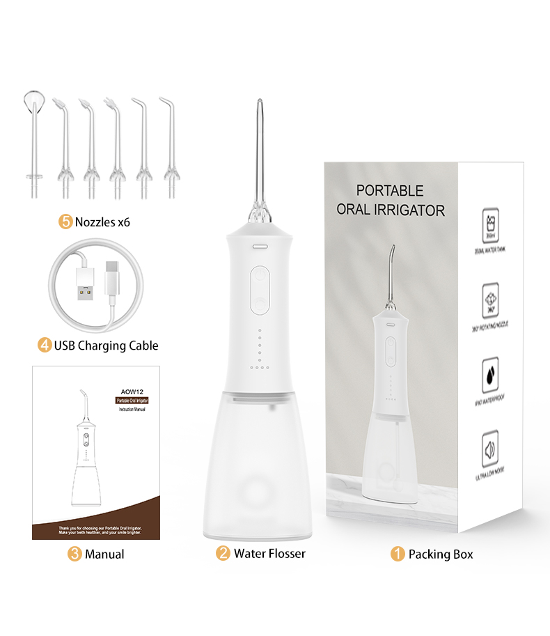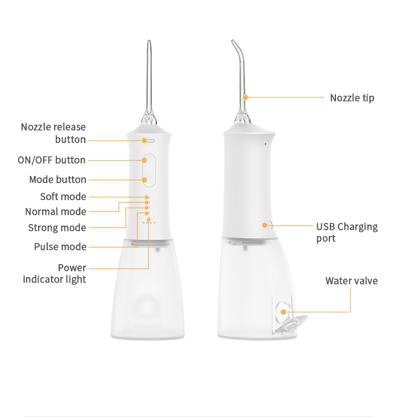Назив производа: Преносни орални иригатор са УСБ пуњењем, пуњиви флозер за воду са млазом воде, водоотпорни Ипк7 зубни фломастер за воду