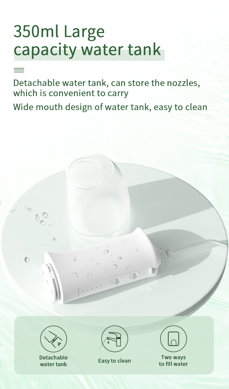Овај конац за воду за зубе има унапређени резервоар за воду од 350 мл, двоструко већи од осталих старих модела, елиминишући потребу за честим допунама и чинећи ваше орално чишћење практичнијим и ефикаснијим